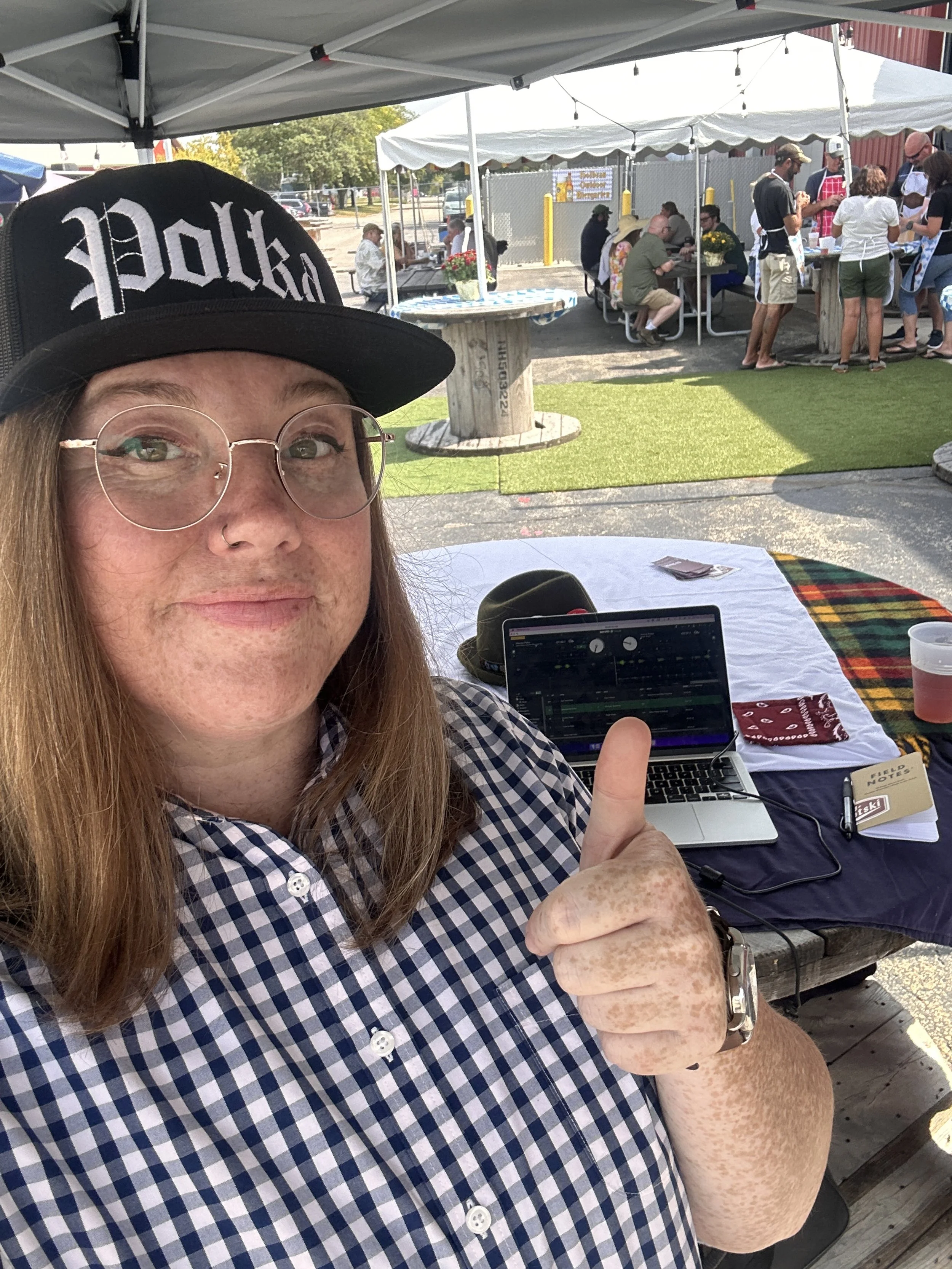 The event highlights included a food vendor selling the longest bratwurst I’ve ever seen, seeing friends who traveled from New Glarus, getting a shout out from Mike Schneider from the stage, and meeting longtime polka DJ and polka ambassador Dick Blaha from Milwaukee. We had a conversation about how polka keeps you young. I hope I’m still going to polka events in my 90s!