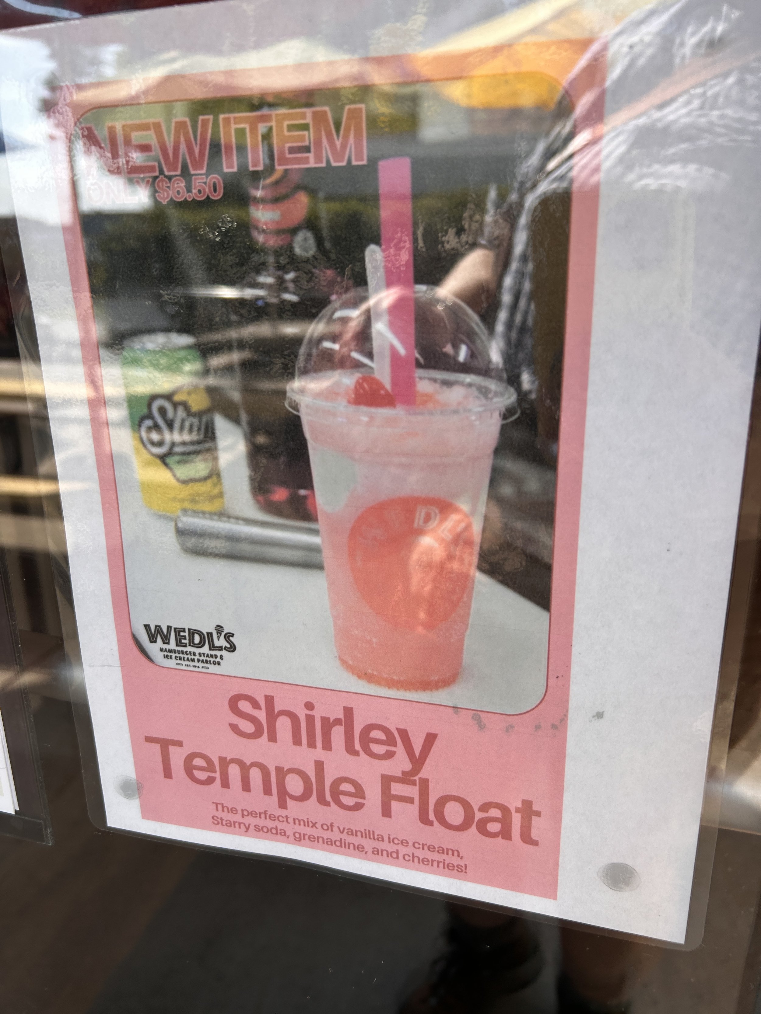 On the way home, I stopped for a burger and shake at Wedl’s hamburger stand. I didn’t get the Shirley Temple float, but I made a note to try this at home with some Peychaud’s bitters. The young workers were playing Munich-style polka music in the shop while they slung Chocolate Shoppe ice cream in cones. The kids are alright.